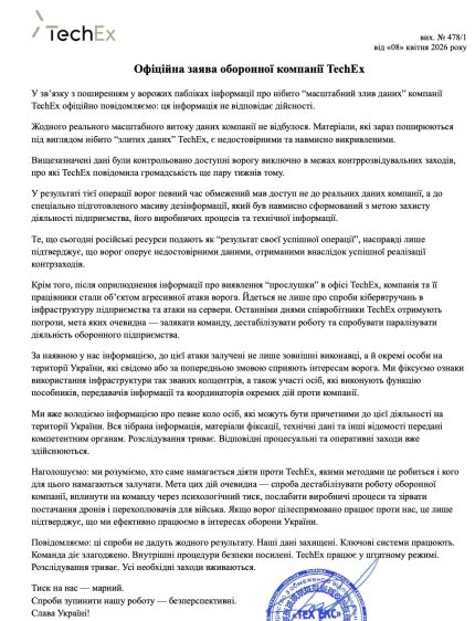 - TechEx опровергла фейк о масштабной утечке данных, называя ее контрразведывательной операцией с дезинформацией.