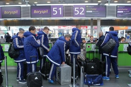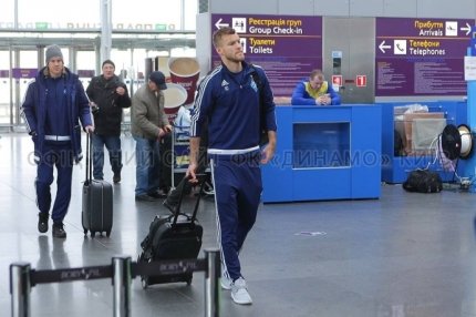 В понедельник, 14 марта, футболисты киевского "Динамо" отправились в Манчестер на ответный матч 1/8 финала Лиги чемпионов против "Манчестер Сити", который состоится 15 марта.