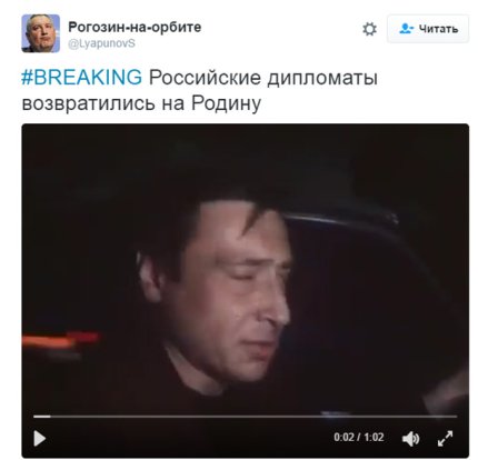 «Российские дипломаты возвратились на Родину», - иронично подписал в своем Twitter пользователь «Рогозин-на-Орбите» фрагмент известного фильма «Окно в Париж».