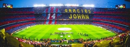 На одной из трибун был изображен 14-й номер, под которым играл Кройф, и надпись "Спасибо, Йохан".