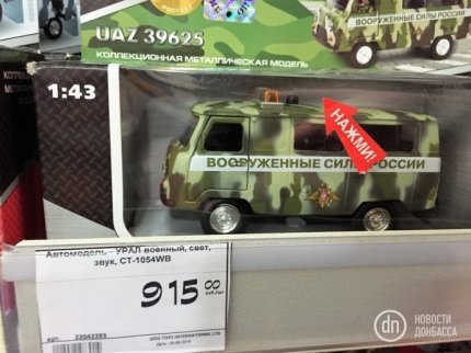 В оккупированных боевиками так называемой ДНР Донецке и Макеевке продают игрушки в виде Вооруженных сил России.