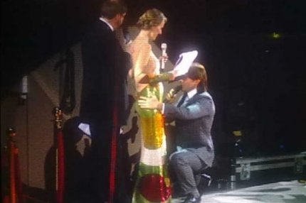 Позже Андрей Малахов своим необычным жестом подтвердил беременность ведущей. Шоумэн вышел на сцену получить премию и упал перед Собчак на колени со словами "дай я приложусь к этому животу". Собчак отреагировала неоднозначно на такой жест со стороны звездного друга и коллеги. «Малахов поцеловал меня куда-то в неопределенность», - с юмором отметила звезда.
