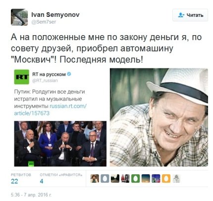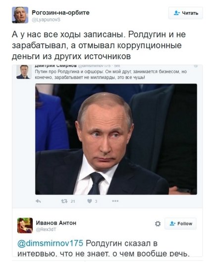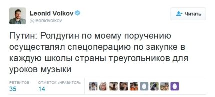 Заявление президента РФ Владимира Путина о том, что он гордится своим другом Сергеем Ролдугиным за то, что тот на заработанные деньги "покупает музыкальные инструменты и оформляет в собственность госучреждений", насмешила блогосферу.
