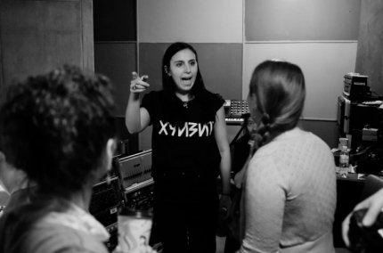 Джамала поделилась в своем микроблоге серией снимков, где показывает процесс записи композиции.