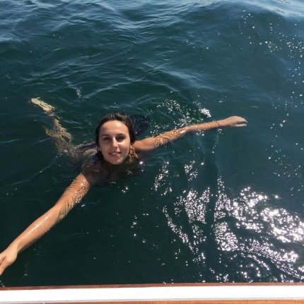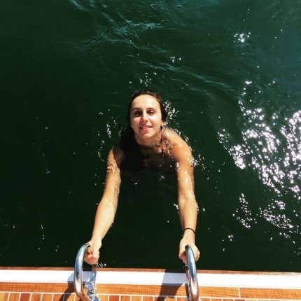 Артистка позирует на фоне морских пейзажей, купается в море, релаксирует на яхте.