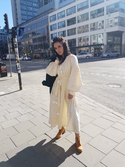 , поделилась с поклонниками новыми снимками. Артистка прогулялась в белоснежной вышиванке в столице Швеции.