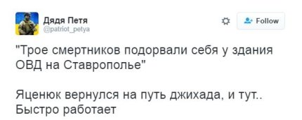 В сети пользователи связали атаку, которую совершили террористы-смертники в Ставрополье, и отставку премьер-министра Арсения Яценюка.