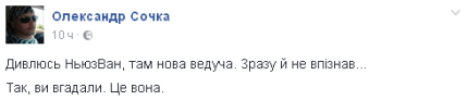 «Смотрю НьюзВан, там новая ведущая. Сразу и не узнал... Да, вы угадали. Это она», — написал он.