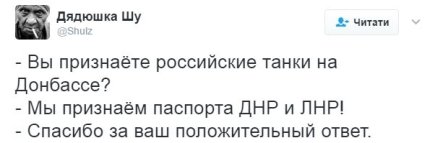 "Важный день сегодня в российско-украинской войне, - высказался и украинский журналист Роман Цимбалюк. - На наших глазах происходит юридическое оформление оккупации. Россия открыто демонстрирует, что не собирается уходить из украинского Донбасса и Минск-2 только покрытие. По сути, аналогично было сделано в Крыму. Действуют чисто по-русски: то что захвачено военным путём "по праву" становиться де-факто Россией. Следующий шаг: по призыву своих ставленников, будут официально введены войска России. Оформят это как в Абхазии и Южной Осетии".