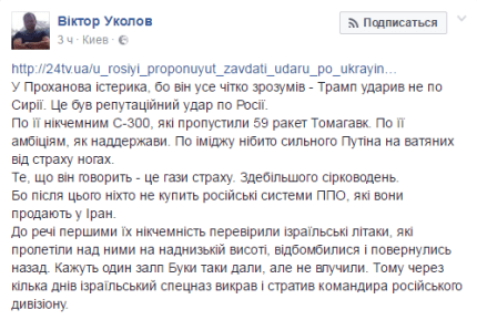 Также прокомментировал слова Проханова известный украинский журналист Виктор Уколов в своем Facebook.