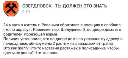 По информации сообщества "Свердловск - ты должен это знать", вблизи жилого дома в Ровеньках произошел взрыв растяжки с запалом от гранаты, которая была размещена в палисаднике.