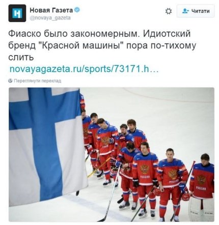 Основное количество россиян склонились к мысли о том, что результат игры, - политическое решение. Таким образом, МинПанд написал: "Проигрыш сборной России по хоккею финам - чисто политическое решение. Для зрителей - они победители!".