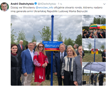 23 июня в польском Вроцлаве открыли круговой перекресток, которому присвоили имя генерала армии УНР Марка Безручко.