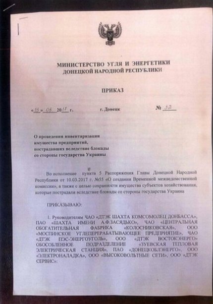 Отмечается, что извещения о необходимости перерегистрации в так называемых ДНР и ЛНР и начала инвентаризации имущества были получены директорами следующих предприятий ДТЭК: