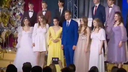 Николай Лукашенко на выпускном со своими одноклассниками (фото - скриншот видео)