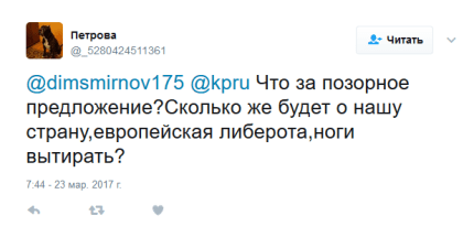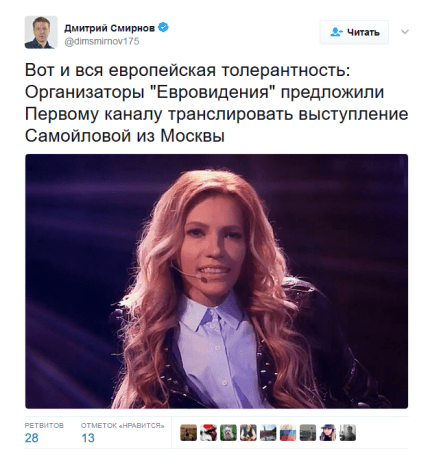 Журналист кремлевского пула Дмитрий Смирнов, который освещает деятельность президента России Владимира Путина разместил в своем Twitter пост, где процитировал предложение ЕВС. Своим твитом Смирнов вызвал бурную реакцию в сети.