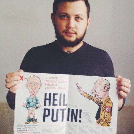 Статья в журнале под заголовком «Хайль, Путин!» проиллюстрирована карикатурами на российского лидера. На одной из них Путин изображен в форме с нашивкой фашистской Германии, на другой – без штанов и нижнего белья.