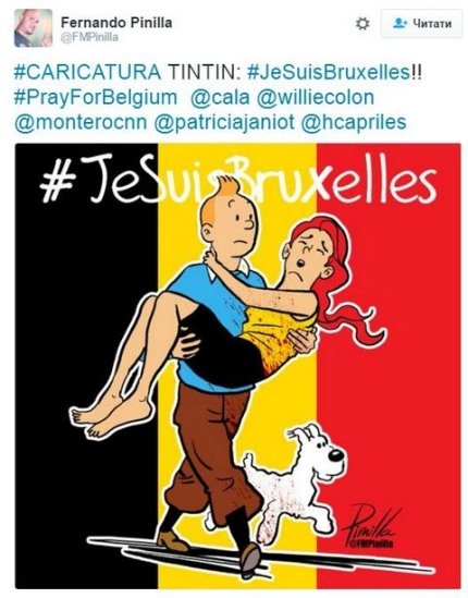 На данный момент хэш-теги #JeSuisBrussels, #PrayForBrussels и #PrayForBelgium стали достаточно популярными в Twitter, и посредством поиска через них можно обнаружить еще множество слов поддержки и карикатур.