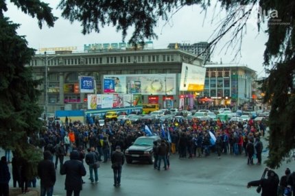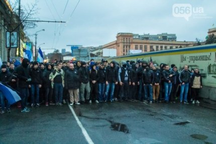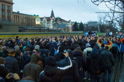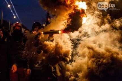 Болельщики днепропетровского "Днепра" и донецкого "Шахтера" прошлись маршем по Днепропетровску накануне матча "Днепр" - "Шахтер" на "Арене-Львов".
