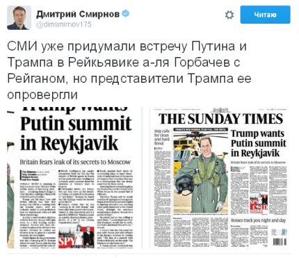 Он напомнил, что новость о встрече, которую Трамп и Путин якобы намеревались провести в столице Исландии, Рейкьявике, по примеру Михаила Горбачева и Рональда Рейгана, опровергли источники в окружении Трампа.