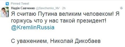 Таким образом, в Twitter теперь есть формально "настоящая" страница Савченко, которую ведут неизвестные; при этом на странице размещаются нелепые твиты и прославления России и российских чиновников.