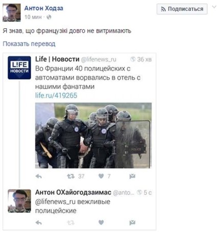 "Я знал, что французики долго на выдержат", - написал по поводу ситуации в своем Facebook Антон Ходза.