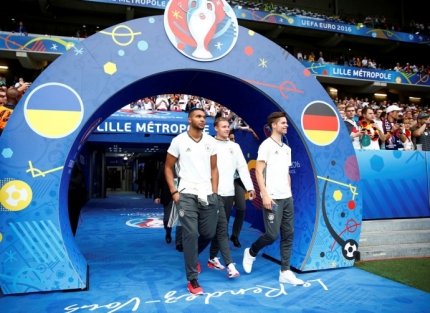 21:10. немцы выходят на футбольный газон (фото - uefa.com)
