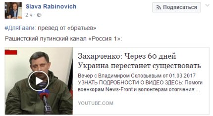Во время прямого эфира на пропагандистском телеканале Россия 1 главарь ьоевиков ДНР заявил, что через 60 дней Украина перестанет существовать.
