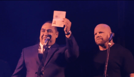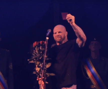 Главарь боевиков так называемой ЛНР Игорь Плотницкий вручил «паспорт республики» американскому бойцу смешанных единоборств Джеффу Монсону во время концерта в Луганске, посвященного 221-й годовщине основания города.