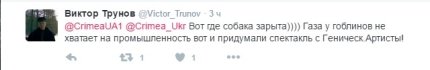 КРЫМский бандеровец: "Крым. Гоблин говорит, что придётся ограничить подачу газа КРЫМСКОЙ промышленности из-за поставок его в Геническ. ААААА) Вот это лапша!".