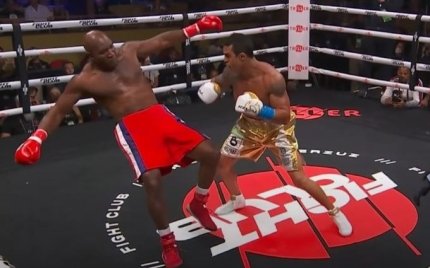 Легендарный американский боксер Эвандер Холифилд вышел на ринг впервые с момента завершения карьеры 2011 года - он сражался против 44-летнего Витора Белфорта, который отправил его в нокаут.