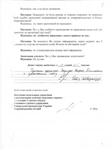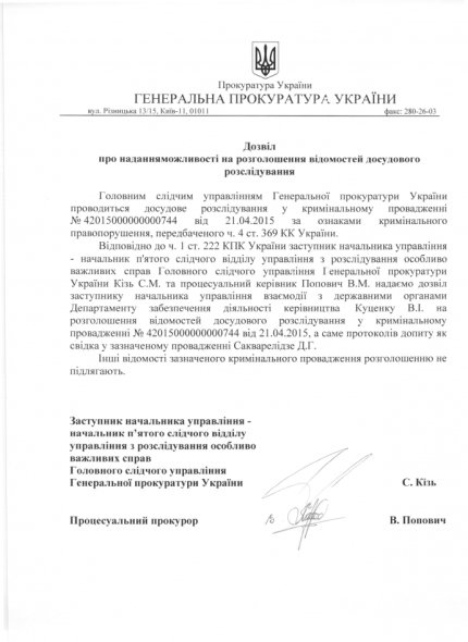 Между тем, на сайте ГПУ был опубликован протокол допроса, подписанный замом генпрокурора.