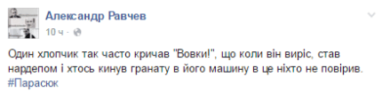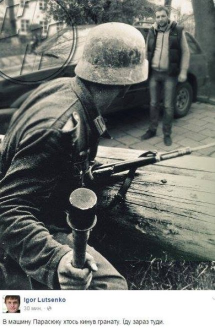 Антон Ходза так прокомментировал инцидент: "В автомобиль гранаты кинули Парасюка".