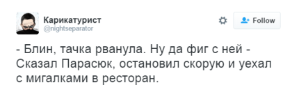 На что пользователь Сергей Федоров ответил: "В ситуации с Парасюком основная неприятность - пострадали 4 машины".