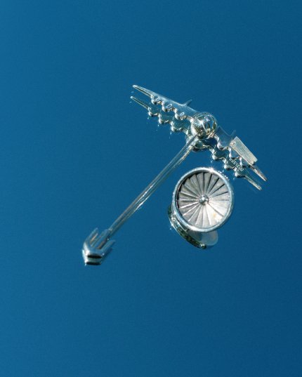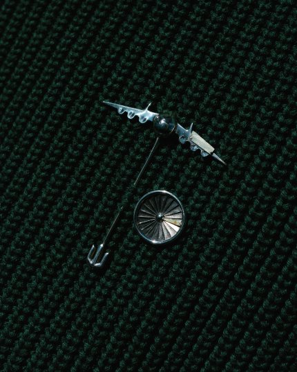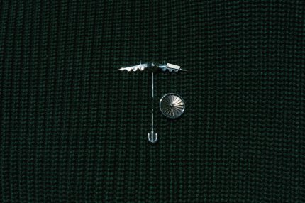 Брошь «Турбина» апеллирует к уникальной черте гиганта — 6-ти двигателям, которыми он, словно глазами, смотрел на мир. Именно эти двигатели делали «Мрію» самым мощным гражданским транспортным самолетом в мире. Тираж тоже ограничен, — 1000 единиц.