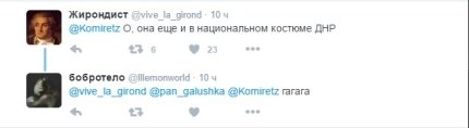 Пользователи соцсети обратили внимание на то, что Монтян была в спортивном костюме, и назвали это "национальной одеждой ДНР", намекая на то, что в псевдореспублике все гопники.