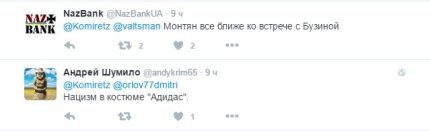 Так, журналист Юрий Бутусов на своей странице в Facebook написал: "Татьяна Монтян действует в Киеве под прикрытием адвоката, а на деле ведет системную антигосударственную деятельность в интересах РФ. Жаль, что сотрудники СБУ и Госпогранслужбы разрешили ей выезд после этой выходки - это реальный агент российских спецслужб, надеюсь, и уголовное дело по ней возбудят. Будет жаль, если этот позор оставят без правовых последствий. Как жаль, что у меня на Позняках есть немало далеких от интернета людей, которые за эту предательницу своего народа голосовали на выборах, хорошо хоть во власть ее не избрали. Человек без чести и достоинства".