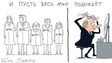 Опоздание Путина на торжественные мероприятия в Париже и его рукопожатие с Трампом и другими мировыми лидерами стали одними из обсуждаемых тем в сети. Не оставил эти события без внимания и известный карикатурист Сергей Елкин, который едко высмеял Путина красноречивыми карикатурами, передает ONLINE.UА.