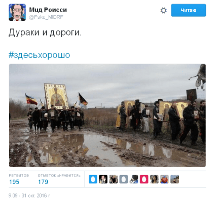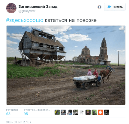 В сети жестко высмеяли инициативу пропагандистского ресурса, который предлагал пользователям публиковать фотографии любимых мест России с хештегом #здесьхорошо.