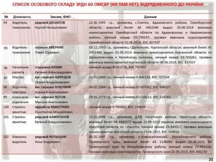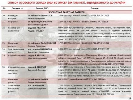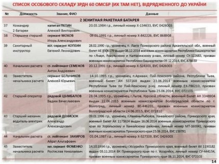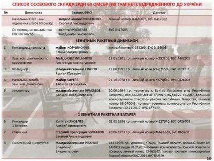 Вместе с командованием дивизиона, для организации боевого применения подразделения, на Донбасс откомандирован начальник противовоздушной обороны - начальник отдела ПВО 60-й отдельной мотострелковой бригады подполковник ВС РФ Тупиченко Сергей Александрович.