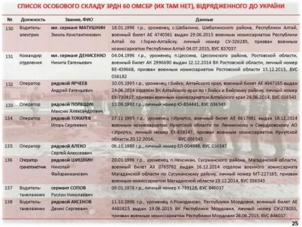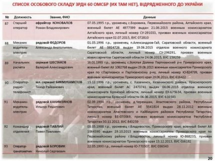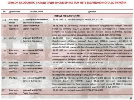 В украинской разведке обнародовали данные о 166 российских военнослужащих, приехавших воевать на Донбасс, несмотря на заверения российской стороны о том, что военных РФ на Донбассе якобы нет.