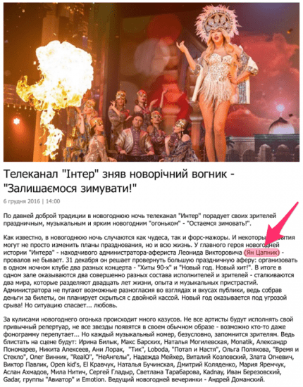 Телеканал «Интер» намерен показать вечером 31 декабря новогодний фильм «Остаемся зимовать», где главную роль исполнил ранее снявшийся в российском пропагандистском фильме "Военный корреспондент" актер Ян Цапник.