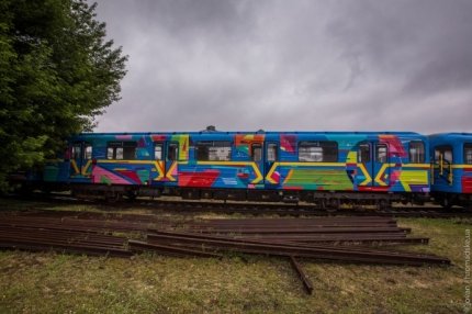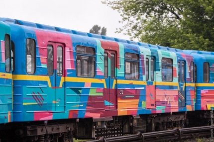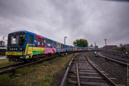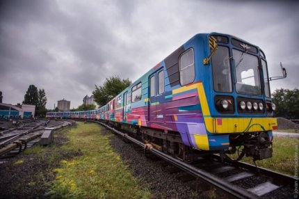 Во вторник, 17 мая, в Киеве представили яркий поезд метро, разрисованный известным испанским художником Kenora.