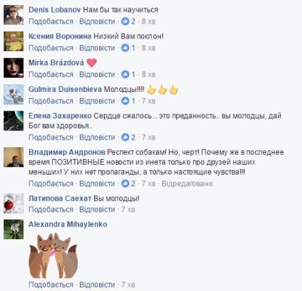 Примечательно, что многие пользователи выразили радость от возвращения собак хозяевам, в то время как некоторые возмутились тому, что возвращенных хозяевам псов угощали шоколадом и что раненная собака лежала на снегу. Оля Якименко: "Это что за хозяин такой? Для собак шоколад - яд, и после всего, что с ними произошло он дает шоколадную конфетку???".