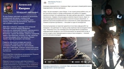Также на сайте минобороны РФ есть интервью с Алексеем, в котором его называют командиром штурмовой роты с позывным "Барсом". Оккупант в маске рассказывает о работе его подразделения: "Штурмовые, оборонные и инженерно-фортификационные обязанности выполняет наша рота".
