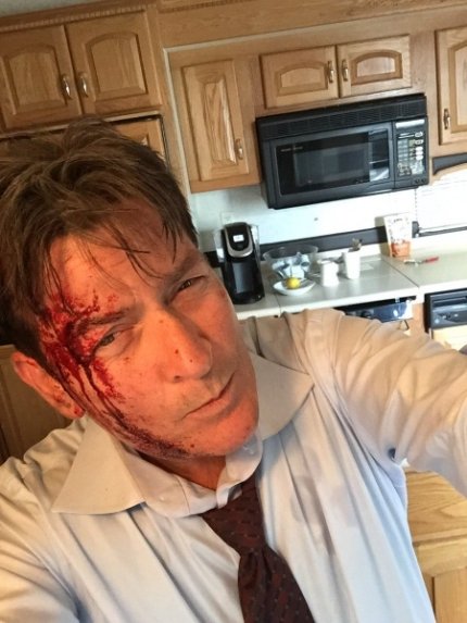 Чарли опубликовал на своей странице в соцсети фото, где изображен в крови.