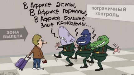 Известный российский художник Сергей Елкин в очередной карикатуре высмеял предложение МВД России ввести "объяснительные" для российских граждан по поводу поездок в страны с конфликтной обстановкой.