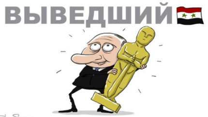 Известный карикатурист, российский художник Сергей Елкин изобразил президента России в качестве лауреата премии Оскар за выведение российских войск из Сирии.