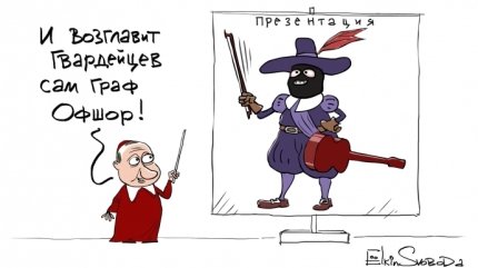 "И возглавит гвардейцев сам граф Офшор", - говорит герой карикатуры.