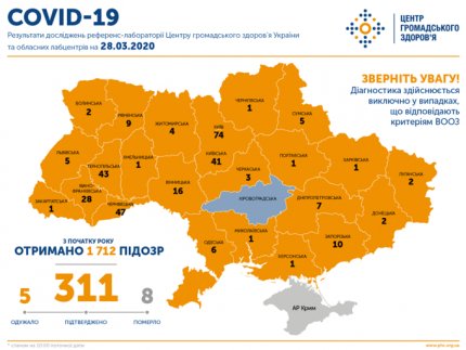 Важно добавить, что на утро 28 марта число заболевших коронавирусом в Украине увеличилось до 311 человек, из них 8 летальных, 5 пациентов выздоровели — 4 взрослых, 1 ребенок. За прошедшие сутки было зафиксировано 93 новых случая. В мире число зараженных коронавирусом достигло 598 032 человек. Больше всего людей заражено в США — 104 256 человека, в Италии — 86 498 человек, в Испании — 65 719 людей.